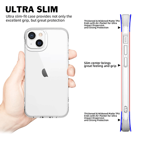 1). Multobla protekto: ŝoko-sorbado kaj gutorezisto, dikeco de 1.5mm, kvar anguloj kun kontraŭ-falaj aersakoj, ekrano, lenso, kvar anguloj estas dikigitaj je 0.3mm, subtila dezajno provizas ampleksan protekton, povas efike protekti la telefonon kontraŭ falo kaj kolizio.